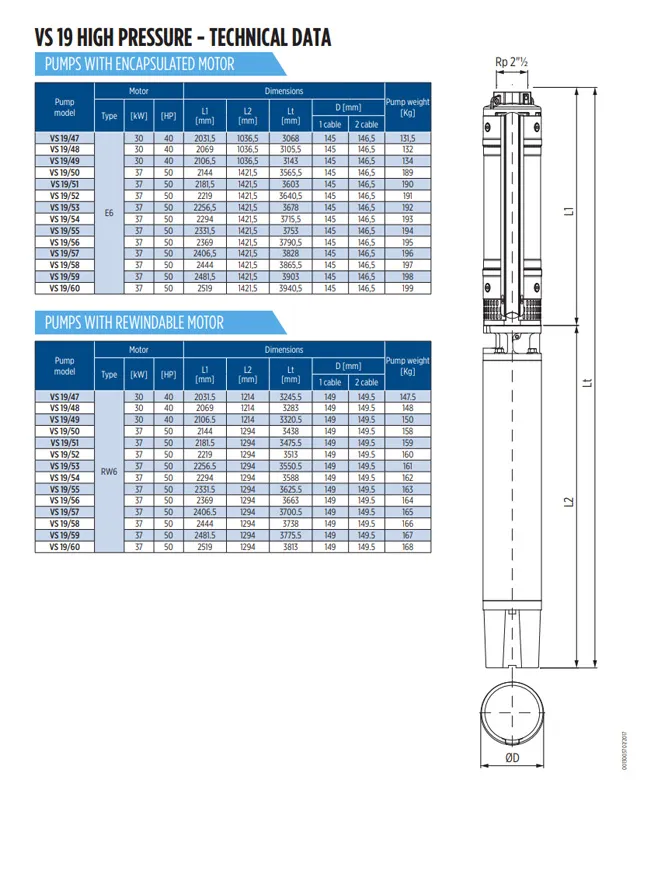 De Franklin VS 19/47 is een robuust en efficiënt hydraulisch pompdeel met een vermogen van 40 PK (30 kW), geschikt voor 6” bronnen. Dit pompdeel wordt gecombineerd met een motordeel en is ideaal voor toepassingen in de landbouw, industrie, huishoudens en drukverhogingssystemen.