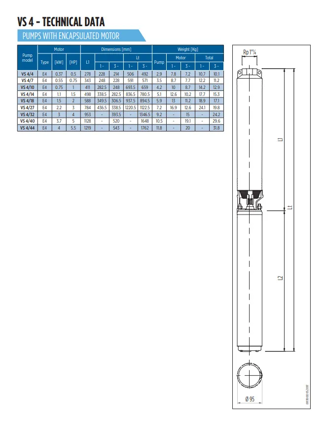 De Franklin VS 4/44 is een robuust en efficiënt hydraulisch pompdeel met een vermogen van 5.5 PK (4 kW), geschikt voor 4” bronnen. Dit pompdeel wordt gecombineerd met een motordeel en is ideaal voor toepassingen in de landbouw, industrie, huishoudens en drukverhogingssystemen.