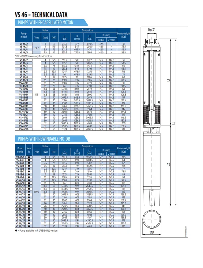De Franklin VS 46/11 is een robuust en efficiënt hydraulisch pompdeel met een vermogen van 20 PK (15 kW), geschikt voor 6” bronnen. Dit pompdeel wordt gecombineerd met een motordeel en is ideaal voor toepassingen in de landbouw, industrie, huishoudens en drukverhogingssystemen.