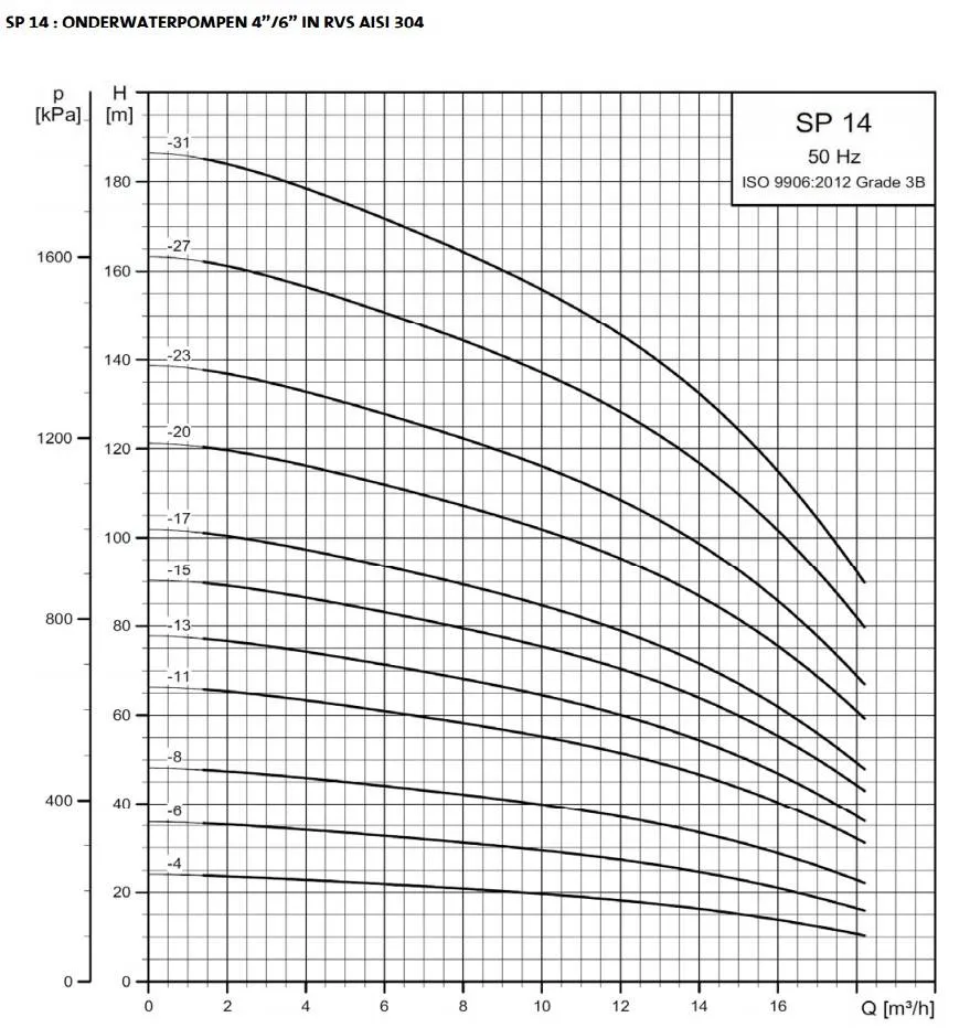 Grundfos SP 14-4 (230 V) bronpomp specificaties