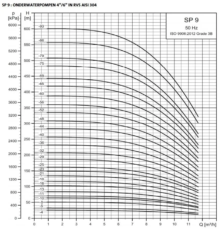 Grundfos SP 9-8 (230 V) bronpomp specificaties