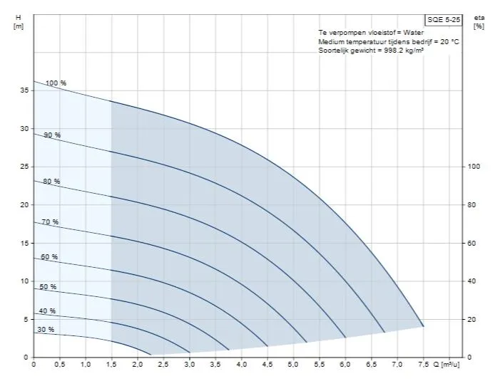 De Grundfos SQE 5-25 bronpomp is van hoge kwaliteit en frequentie gestuurd. De pomp heeft een variabel toerental en is daardoor energiebesparend. Deze meertraps centrifugaalpomp is compact en kan geïnstalleerd worden in een boorgat met een minimale diameter van 76 mm (3").