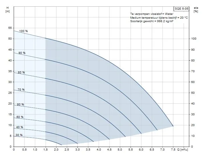 De Grundfos SQE 5-35 bronpomp is van hoge kwaliteit en frequentie gestuurd. De pomp heeft een variabel toerental en is daardoor energiebesparend. Deze meertraps centrifugaalpomp is compact en kan geïnstalleerd worden in een boorgat met een minimale diameter van 76 mm (3").
