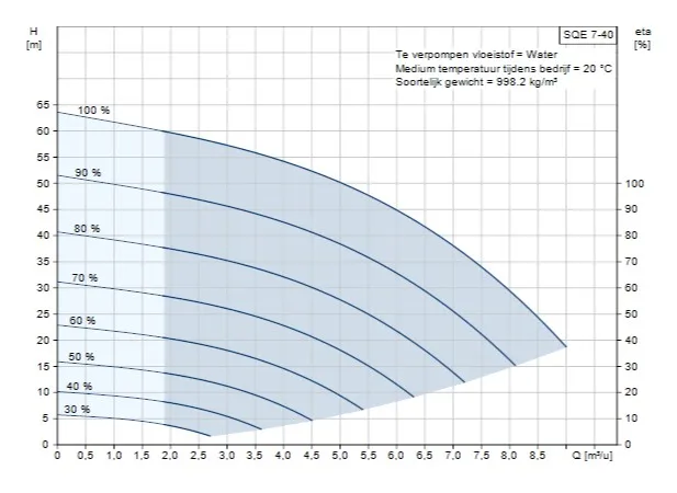 De Grundfos SQE 7-40 bronpomp is van hoge kwaliteit en frequentie gestuurd. De pomp heeft een variabel toerental en is daardoor energiebesparend. Deze meertraps centrifugaalpomp is compact en kan geïnstalleerd worden in een boorgat met een minimale diameter van 76 mm (3").