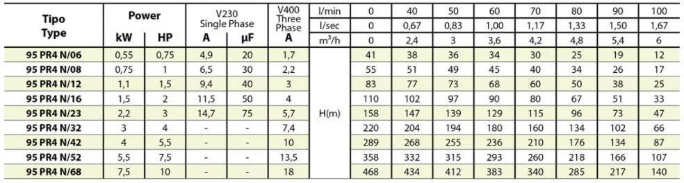 De Panelli 95 PR4N/08 bronpomp is voorzien van een volledig RVS 304 gegoten pompdeel en levert uitzonderlijk goede prestaties ten opzichte van zijn concurrenten. Deze bronpomp set is helemaal compleet met 20 meter stroomkabel, nylon koord en aansluitkast. Deze plug & play uitvoering is hierdoor enorm populair. De bronpomp is voorzien van een 1 PK motordeel en geschikt voor 230V aansluiting.