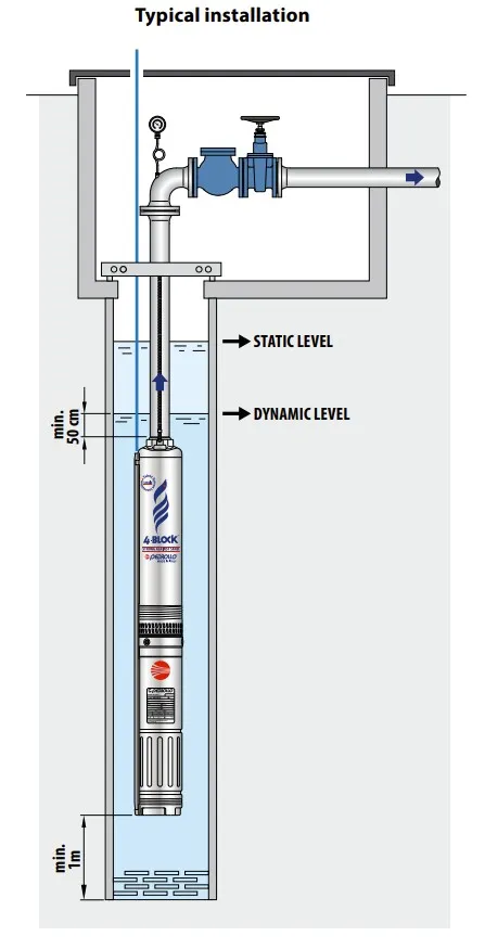 Deze bronpompen zijn geschikt voor particulier gebruik. Er is een minimale brondiameter van 110 mm binnenwerks vereist voor het kunnen plaatsen van de 4BLOCK m 4/13 bronpomp.