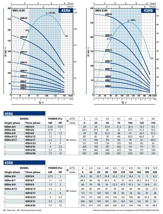 De 4SR6/23 heeft een motorvermogen nodig van 4 PK / 3,0 KW. in een 400v. uitvoering.